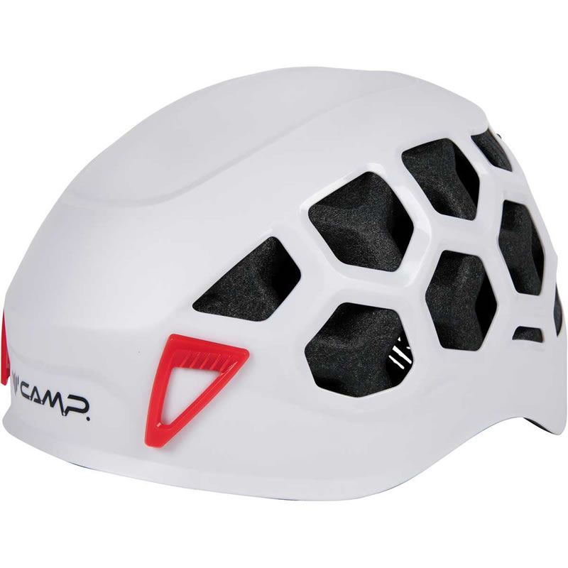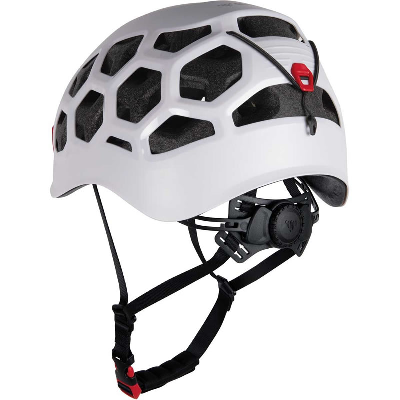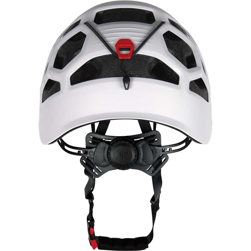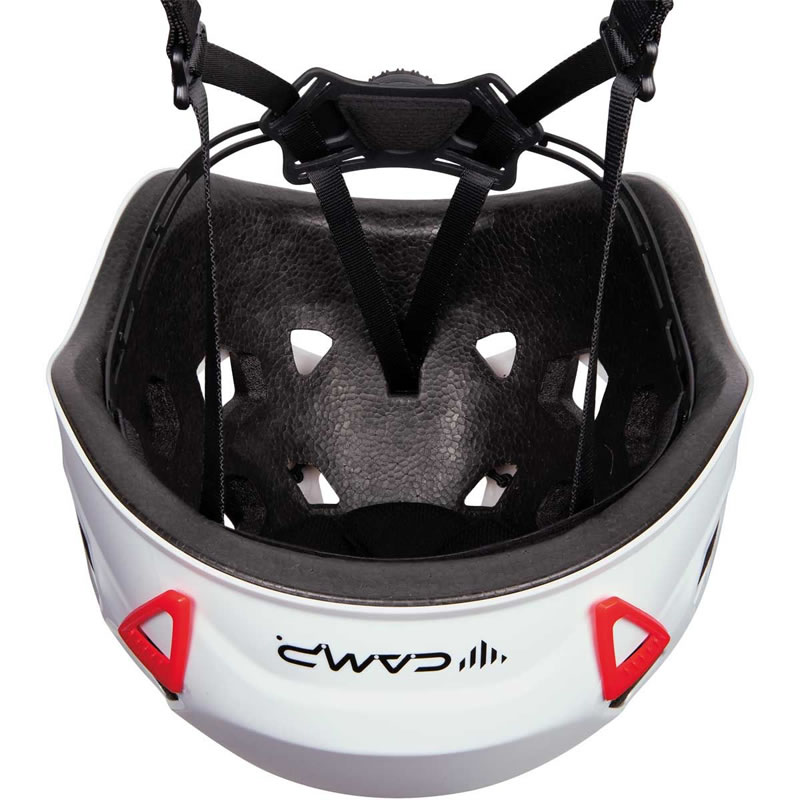 Casco di nuova generazione che combina la protezione e la robustezza dei modelli hardshell con la leggerezza e la ventilazione di quelli in-mold. Il guscio in ABS è eccezionalmente resistente, caratterizzato da una costruzione a nervatura 3D in corrispondenza delle aperture di ventilazione a nido d’ape. Sono così incrementate robustezza e rigidità. La calotta interna in EPP con top in EPS si estende su tutta la superficie del guscio esterno. Presenta aperture di ventilazione traslate che si combinano con quelle del guscio e aumenta la protezione in caso di impatti laterali. Il sistema di regolazione, dotato di comoda rotella azionabile anche con una sola mano, è basculante per essere compattato all’interno del casco riposto nello zaino. Anche il portalampada, caratterizzato da 2 clip anteriori ed elastico posteriore, è all’insegna della funzionalità: pratico e veloce, è utilizzabile a casco indossato grazie al tiretto posteriore e all’invito nella parte anteriore del guscio, tra le 2 clip.