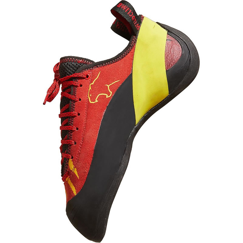 La tomaia in microfibra è leggera, traspirante e resistente. Permette inoltre alla scarpetta di mantenere la sua forma nel tempo senza allargarsi eccessivamente con l’utilizzo. La chiusura a lacci ti permette una regolazione precisa e un ottimo comfort di calzata. La suola utilizzata è invece la Wild Rubber performance, una gomma ad alta aderenza che garantisce un grip eccellente sia su roccia che in palestra.